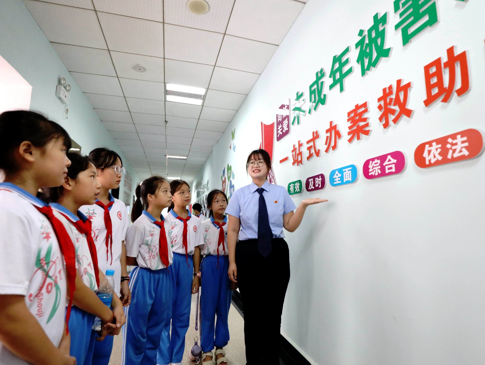 9月28日,江西省新余市分宜一小关工委组织青少年走进分宜县人民检察院,开展“队旗引领·法治同行”为主题的沉浸式学法实践活动,通过“看、听、玩、悟”触摸法治温度,让法治信仰在青少年心底生根发芽。