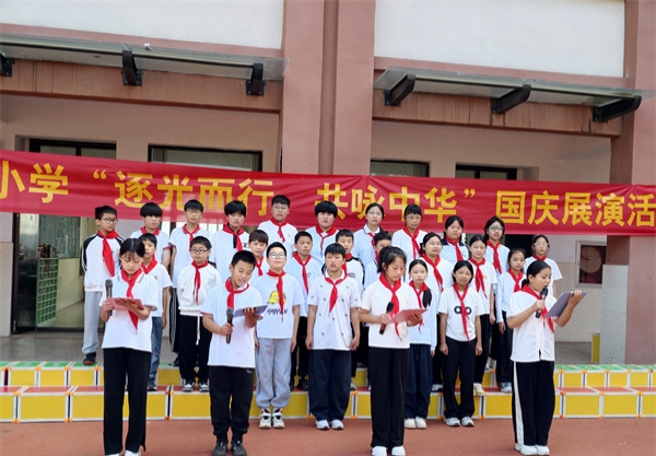 为热烈庆祝国庆节,厚植学生的爱国情怀,9月30日,江苏省徐州市铜山区汉王镇刘庄小学关工委以“逐光而行,共咏中华”为主题,举办庆国庆朗诵合唱比赛,各年级学子用嘹亮歌声与深情朗诵,向祖国母亲献上诚挚祝福。
