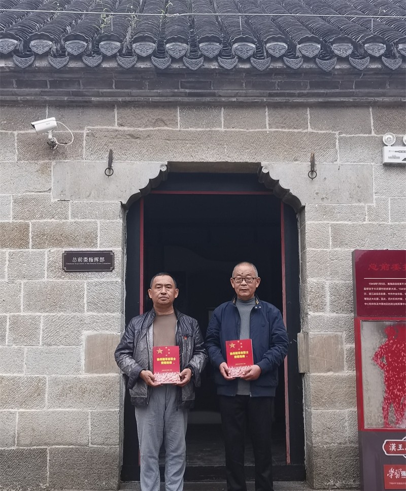 10月5日上午,江苏省徐州市关工委《小海燕》报主任编辑梁苏国同志到江苏省徐州市铜山区汉王镇渡江战役总前委旧址调研,王兴田馆长热情接待了梁苏国主任,带领梁苏国主任参观了渡江战役总前委旧址,介绍了刘伯承、邓小平、陈毅等老一辈无产阶级革命家指挥渡江战役取得胜利的故事。