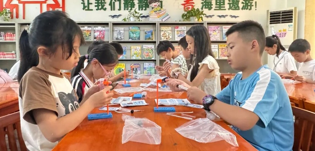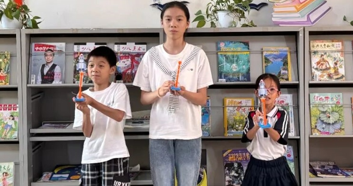 活动伊始,图书馆老师以生动形象、通俗易懂的语言,为孩子们揭开空气动力学的神秘面纱。通过生活中常见的例子,如气球放气时飞向反方向的现象,巧妙引入“反作用力”“气压”等科学概念,深入浅出地解释了火箭发射的基本原理。小朋友们聚精会神,踊跃提问,在互动中逐步理解了空气如何成为推动火箭升空的“隐形力量”。原理讲解后,活动进入高潮环节——冲天火箭发射器制作。孩子们领取材料包,在老师的耐心指导下,一步步完成拼装、组合等工序。当一架架自制火箭"嗖"地腾空而起时,现场欢呼声此起彼伏。