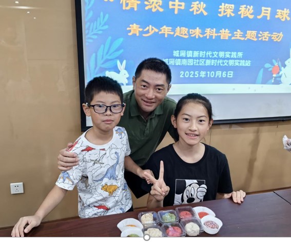在全国同庆“双节”之时,一场以“情浓中秋,探秘月球”为主题的亲子趣味科普活动,在江苏省太仓市城厢镇南园社区顺利开展。二十组亲子家庭齐聚一堂,通过中秋知识讲解、月相知识科普和月饼制作,共同度过了一个充满文化与温情的上午。