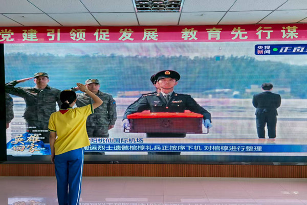 此次直播观看活动,让学生们直观感受到了志愿军先烈的崇高精神与国家对烈士的尊崇,为学生上了一堂生动的爱国主义教育课。通过亲眼见证遗骸回国的庄严时刻,学生们对“英雄”“爱国”有了更深刻的理解,进一步激发了民族自豪感与责任感,在校园内营造了缅怀先烈、致敬英雄的浓厚氛围。