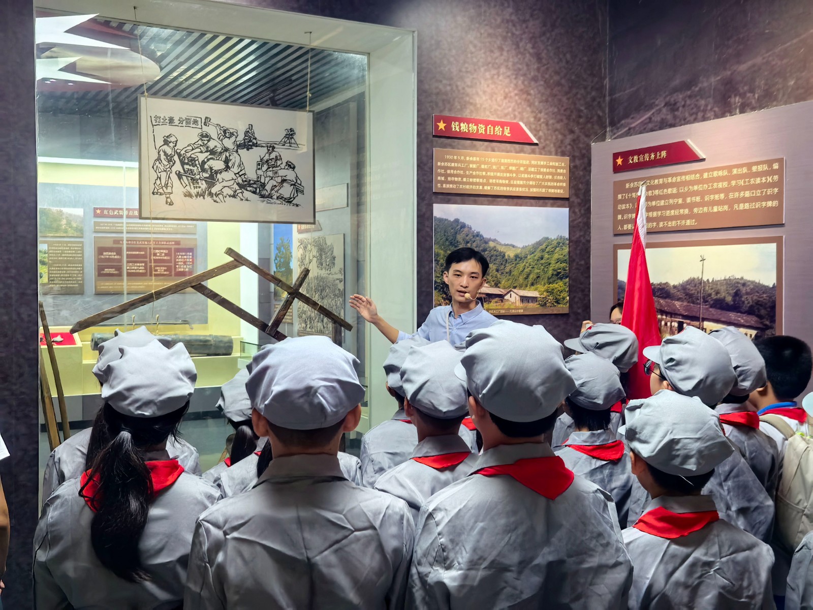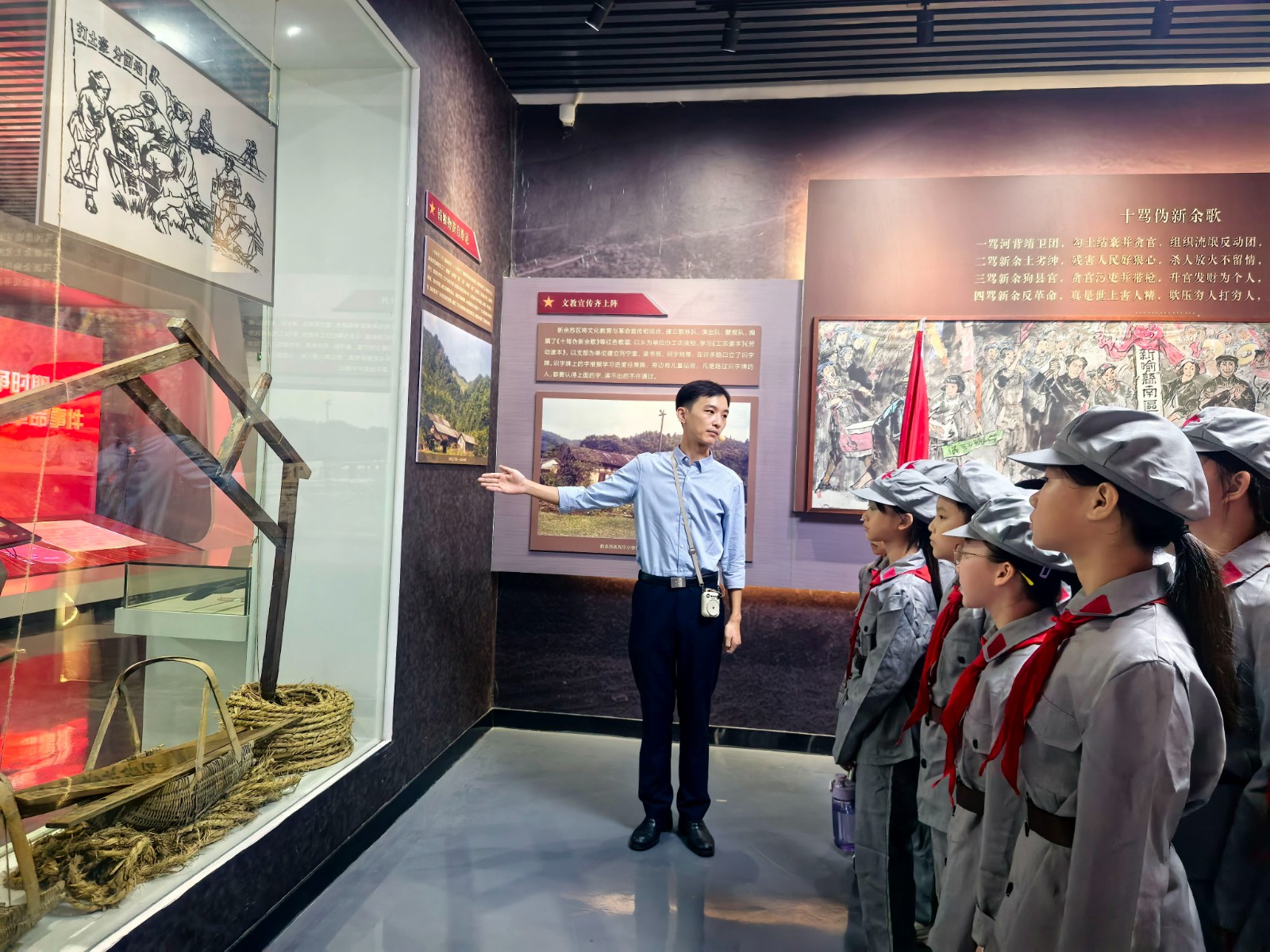 在展陈中心内,队员们静心聆听讲解员叔叔的深情讲述。一段段关于新余本土革命根据地建立的峥嵘岁月,一个个先烈们抛头颅、洒热血的英勇故事,仿佛将大家带回了那个烽火连天的年代。队员们眼神专注,一颗颗红色的种子在心中悄然萌芽。