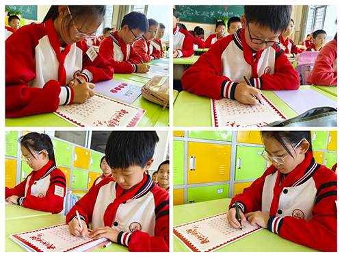 一撇一捺,书写赤子之心;一字一句,凝聚文化底蕴。同学们认真誊写爱国诗词,在横竖撇捺间感受汉字之美,在诗词意境中体会家国情怀,用笔墨为盛世中华写下少年的注脚。