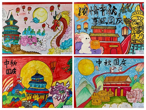 多彩绘画献双节,同学们用画笔勾勒出对祖国的热爱与对团圆的向往。五星红旗、皎洁明月、家乡美景……一幅幅充满童趣的作品,既有山河壮丽的豪迈,也有阖家欢乐的温馨,这些绘画作品是孩子们献给祖国与佳节的真情告白。
