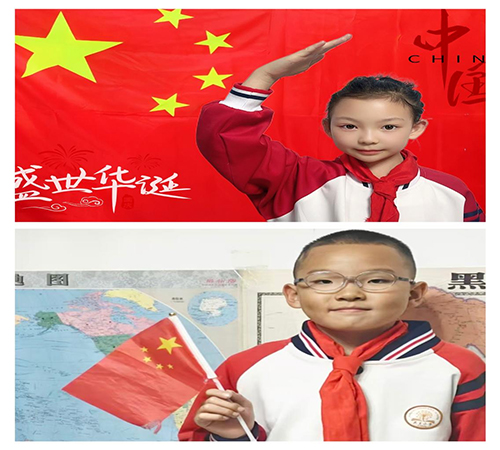 有一种深情,叫“我爱你中国”;有一种骄傲,叫“我是中国人”。同学们用镜头定格对祖国的热爱,灿烂的笑容与五星红旗同框,表达对祖国最真挚的祝福!