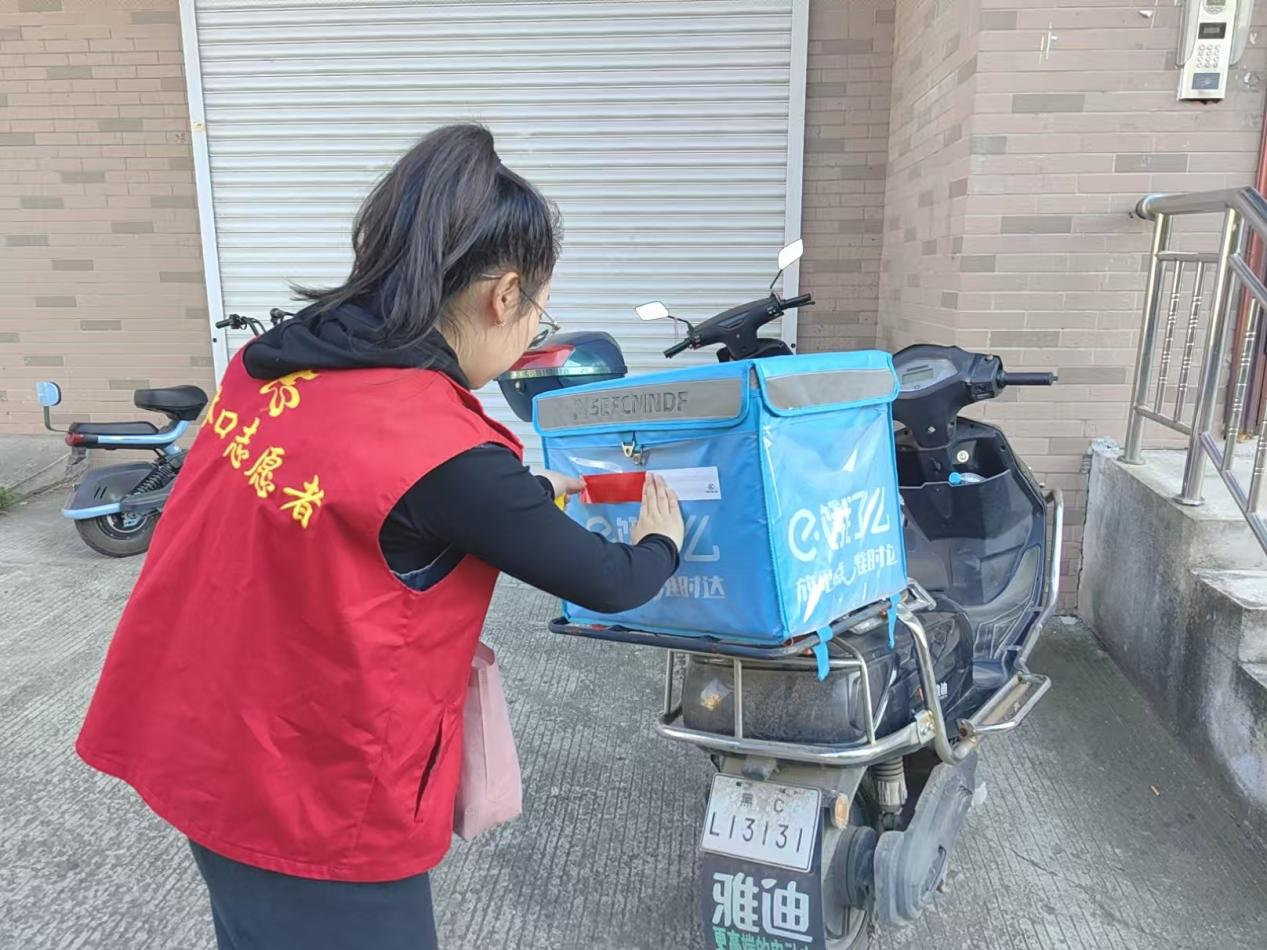 活动前期,社区通过业主群通知、张贴海报等方式提前宣传,让居民了解活动意义与时间,广泛动员参与。活动当天,“五老”志愿者们分成多个小组,携带反光贴、清洁布等工具逐户走访。每到一户,大家都耐心细致地向居民讲解夜间骑行不亮灯、车身无反光标识的安全隐患,结合近期典型案例强调反光贴在夜间及恶劣天气下对提升辨识度、避免碰撞的重要作用。随后,大家仔细清洁车身粘贴部位,根据电动车车型特点,将反光贴精准贴在车头、车尾、车身侧面等关键位置,并现场演示反光效果,确保夜间行驶时能被清晰识别。
