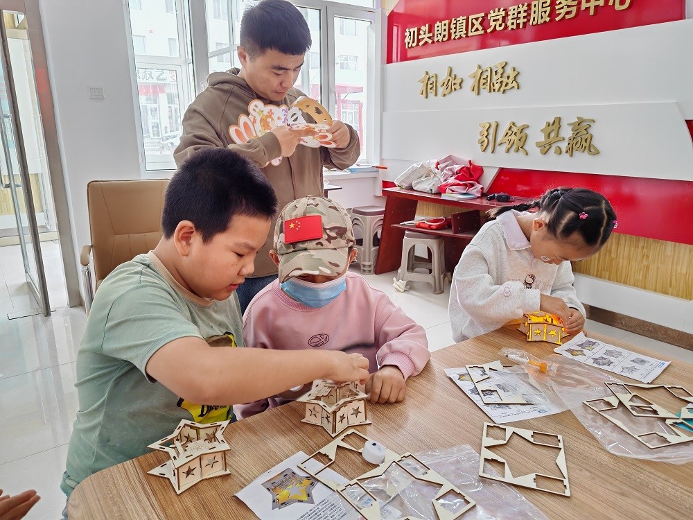 在群星社区活动点,镇关工委牵头设计的手工 DIY 环节成为 “人气焦点”。关工委不仅协调邀请“五老”志愿者参与指导,还为亲子家庭准备了贴合双节主题的制作材料。孩子们在家长与志愿者的指导下分工协作,指尖翻飞间,既锻炼了动手与审美能力,更将双节的 “红色氛围” 与 “传统韵味” 融入作品,这些亲手制作的纪念品,也成为关工委助力青少年留存节日记忆的特殊载体。
