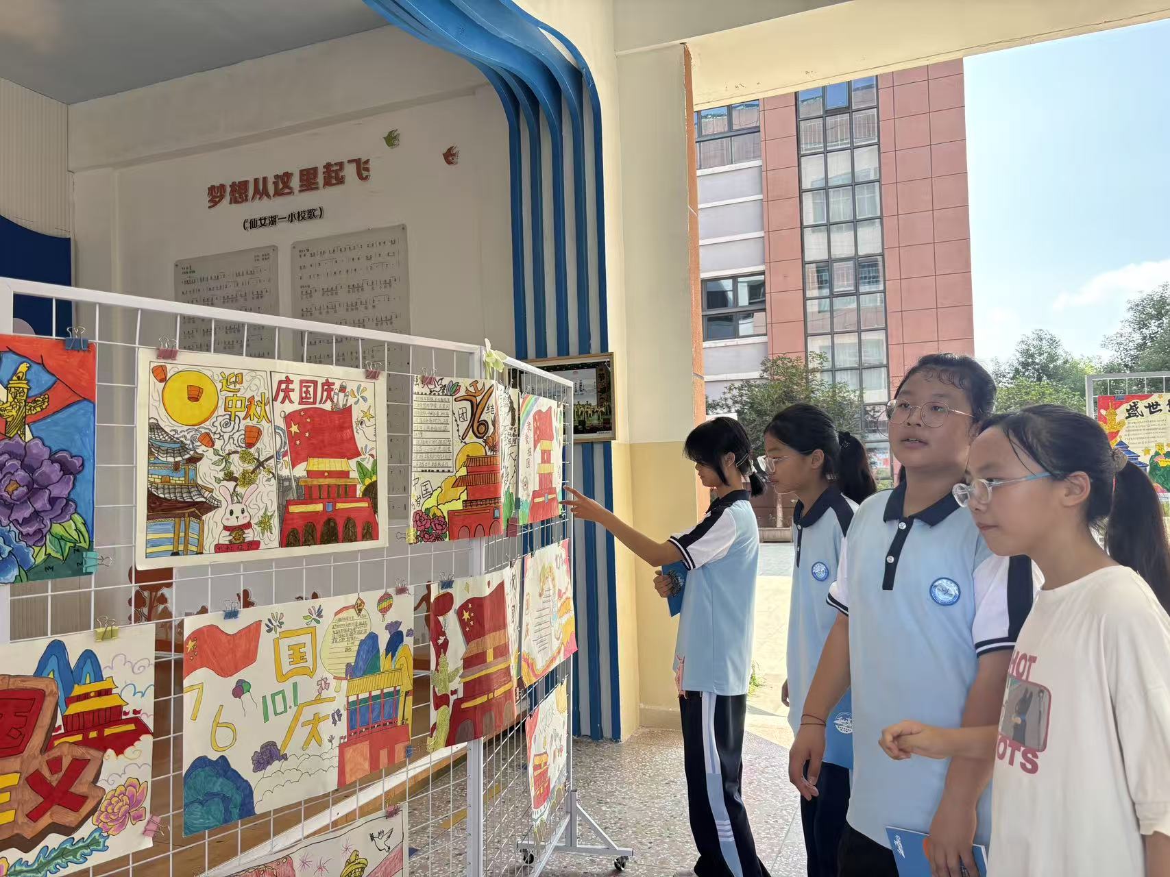 此前,同学们围绕国庆主题踊跃创作,用画笔勾勒天安门、长城等家国符号,用文字书写对祖国76年发展成就的赞叹。活动现场,教学楼展区陈列着一幅幅获奖作品,或展现家乡新貌,或讲述英雄故事,色彩鲜明且主题突出。关工委成员为获奖同学送上肯定与鼓励,同学们驻足观赏交流,在细节中感受家国变迁与时代荣光。