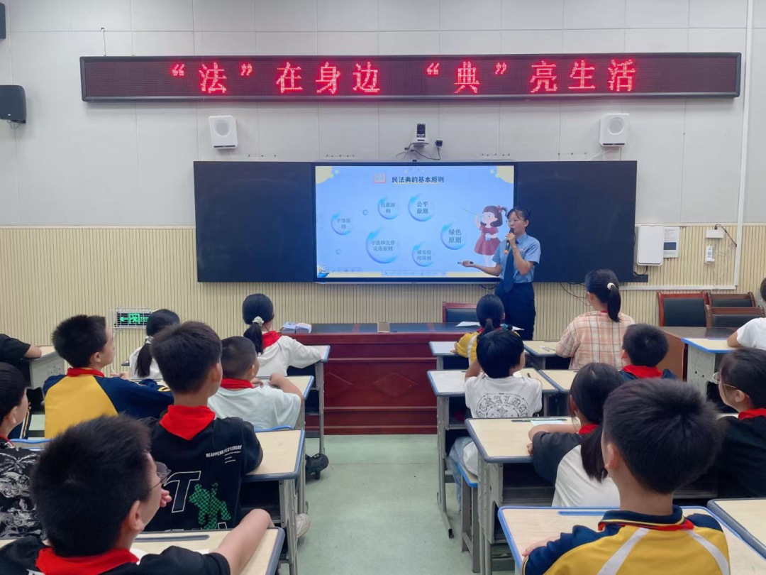 法治副校长唐萃结合日常生活中的真实案例,围绕“受教育权”“合法财产权益”“未成年人行为边界”等内容,用故事化的语言解读《中华人民共和国民法典》,让同学们认识到《中华人民共和国民法典》是时刻守护在身边的“权利保障书”。