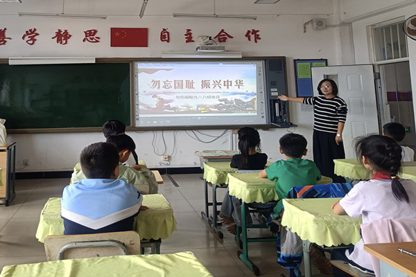 各班级以“勿忘国耻,振兴中华”为主题召开班会。班主任通过老照片、历史短片等素材,向学生们讲述“九一八事变”的起因、经过和影响,用通俗易懂的语言解释“十四年抗战”的起点意义,让学生了解到日本侵略者的残暴行径和中国人民的反抗精神。班会中,学生们积极分享自己搜集的抗日小英雄故事,在交流中体会革命先辈的勇敢无畏,进一步强化学生对历史的记忆,激发他们的爱国热情。