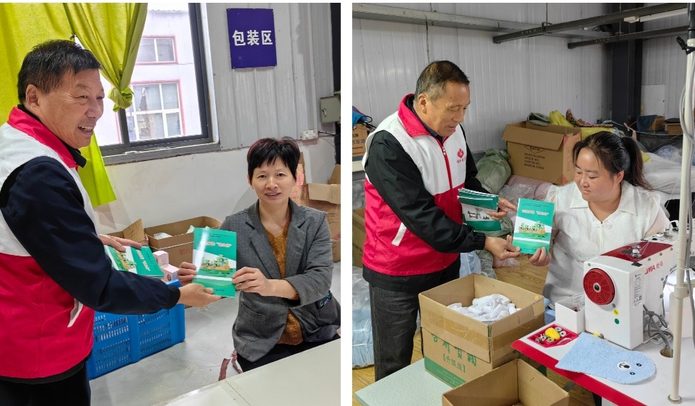 10月11日上午,安徽省阜阳市阜南县于集乡关工委“五老”志愿者,开展“安全宣传进企业”主题走进安徽亿朗家居用品有限公司车间宣教活动。