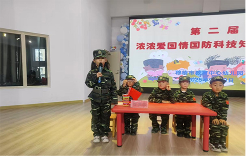 “少年智则国智,少年强则国强”。近几年来,我园将国防科技教育作为我园的特色活动,把爱国情怀的种子撒在孩子们心中,持续加强幼儿体质训练、锤炼幼儿坚强、勇敢的意志品质,培养幼儿爱国爱家情怀,为孩子们的成长奠定坚实的基础。