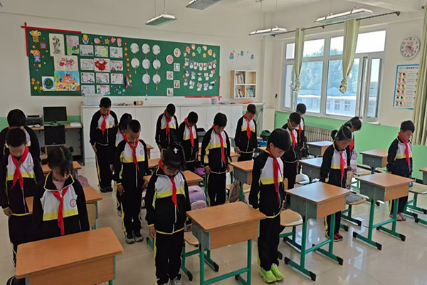 9月18日上午9时18分,校园内响起防空警报,全体师生在教室、操场原地肃立,低头默哀1分钟。默哀过程中,校园寂静无声,师生们以最肃穆的方式缅怀在“九一八”事变中遇难的同胞和革命先烈,感受历史的沉重与和平的珍贵。简短的默哀仪式,让学生在静默中体会“勿忘国耻”的深刻内涵,增强了历史使命感。