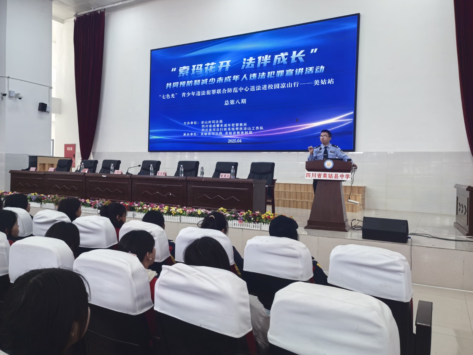 为贯彻落实国家对未成年人法治教育的指导要求,切实提升美姑县青少年法治意识和法治素养。近日,美姑县关工委、县司法局、县教体科局,走进美姑中学、美姑县大桥初级中学开展“七色光”青少年违法犯罪联合防范中心送法进校园凉山行法治宣传活动。