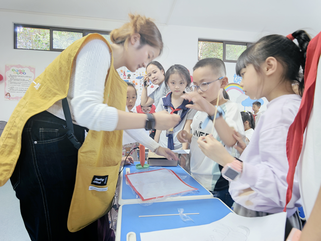 随后的互动问答环节,聚爱公益中心的罗老师结合纪录片内容抛出问题:“糖画的常用原料是什么?”“传统糖画里常见的生肖图案有哪些?”孩子们立刻高高举起小手,有的还着急补充细节,现场笑声与抢答声交织,不仅巩固了文化知识,更调动起参与热情。
