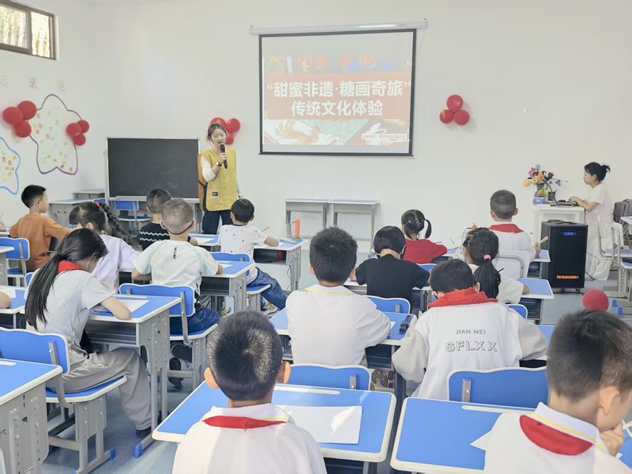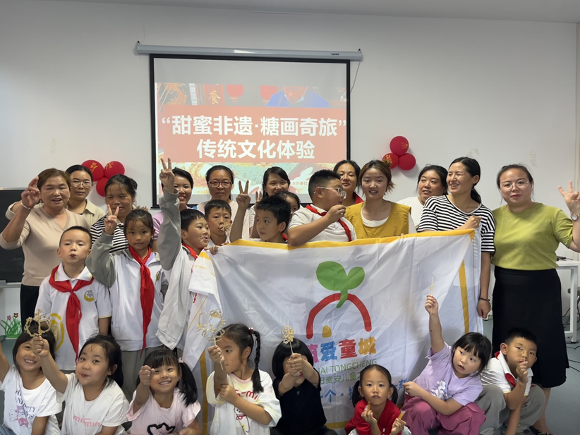 为传承中华优秀非遗文化,丰富社区儿童精神文化生活,2025年10月11日云岩区杨惠街道关工委、惠龙社区“惠惠龙儿童之家”联合聚爱公益中心组织开展了“甜蜜非遗 糖画奇旅”非遗主题文化体验活动,吸引了30多名社区儿童踊跃参与,大家在甜蜜互动中近距离感受糖画技艺的独特魅力。活动围绕“认知—互动—实践—留念”四大环节设计,既注重文化知识传递,又强化沉浸式体验,确保活动效果落地。活动伊始,青年志愿者播放糖画非遗专题纪录片,以动态影像清晰展现糖画的历史渊源、地域流派及传统制作技艺,让孩子们直观认识这项“舌尖上的传统艺术”,不少孩子盯着屏幕里流转的糖液,眼中满是好奇与期待。