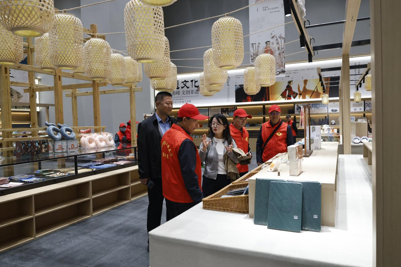 活动伊始,向阳街道领导班子成员及30余名“五老”人员走进辽代历史文化博物馆文创产品展区,共同欣赏独具赤峰特色的各类代表性文创产品。跟着讲解员的步伐,“五老”人员们对辽代历史文化博物馆的四个展厅进行了参观学习,了解辽时期的契丹民族历史发展进程及其文化成果,以文物为依托,弘扬中华优秀传统文化,感受辽代历史文化的独特魅力。