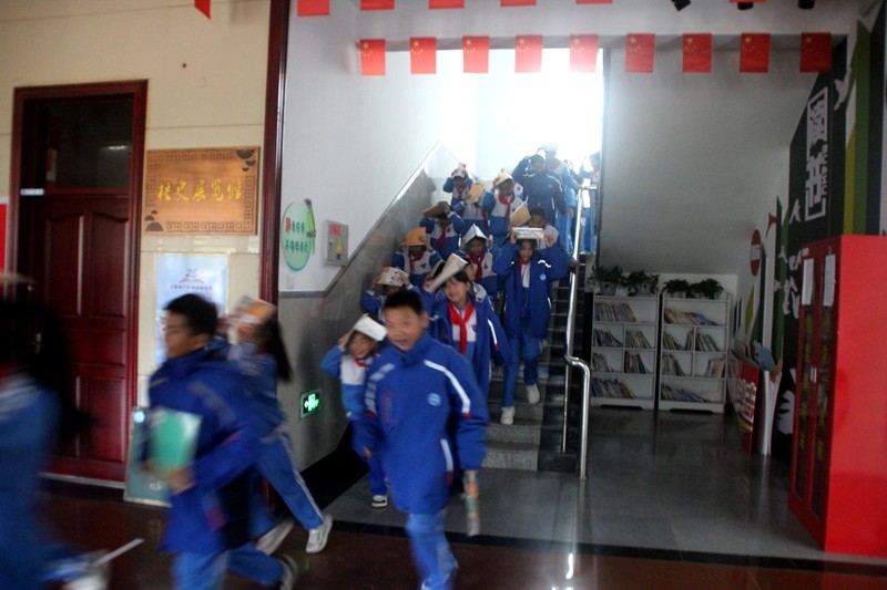随着模拟地震警报声响起,演练正式开始。各班学生在班主任指挥下,迅速双手抱头、弯腰下蹲,躲避到课桌下方等安全区域;待“避险期”结束,疏散指令下达后,学生们按照预定路线,低姿快速、有序地向操场等空旷集合点疏散,全程不推挤、不喧哗。到达集合点后,班主任立即清点人数,并向演练总指挥汇报,整个疏散过程高效有序,仅用时3分20秒,达到预期效果。