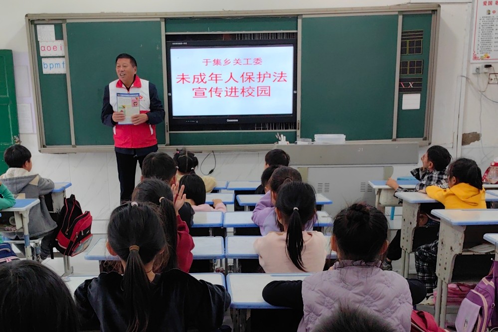 为了进一步加强未成年人安全保护意识,提高社会对未成年人保护的重视,营造关爱未成年人良好的校园氛围,10月17日上午,安徽省阜阳市阜南县于集乡中心学校关工委开展“未成年人保护法”主题宣教进校园活动。