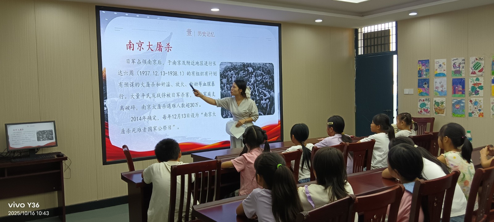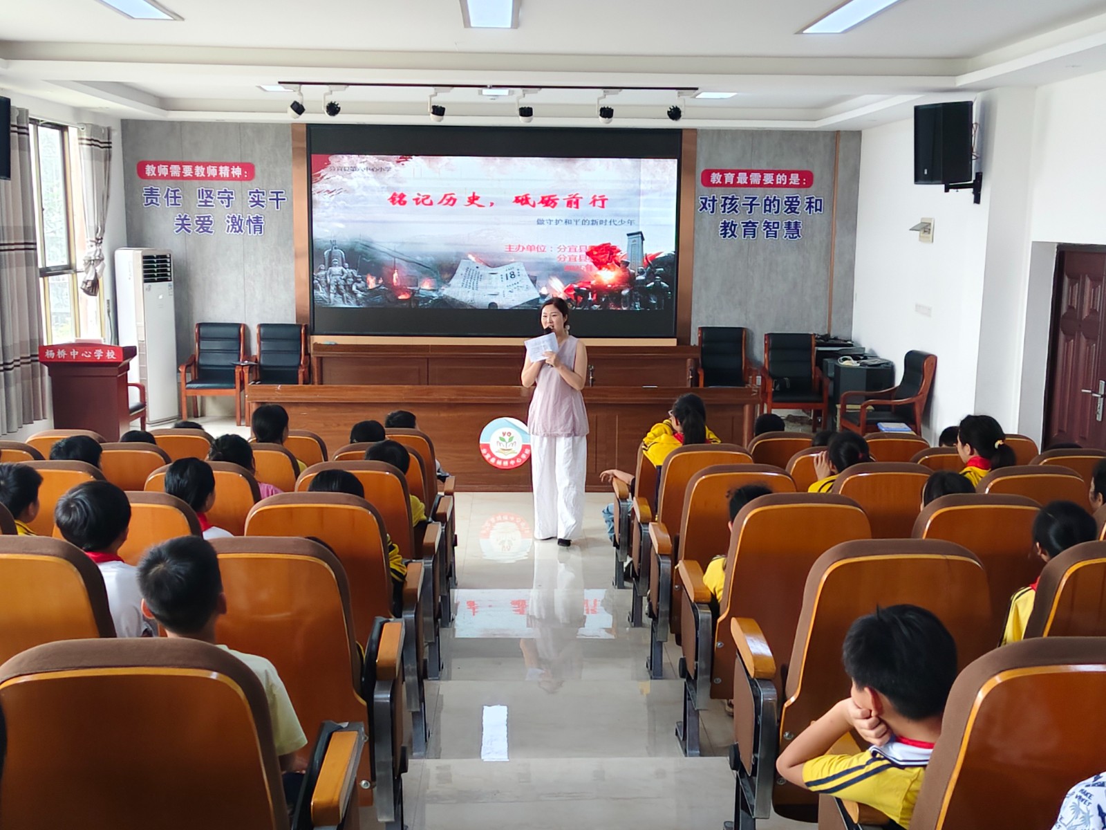 宣讲员以“铭记历史、砥砺前行”为主题,详细讲述抗日战争历史和英雄事迹,激发青少年对先辈的崇敬之情,通过新中国日新月异的变化让青少年树立“少年有担当,国家有力量”的意识,引导青少年以实际行动传承红色基因,从小事做起,争做新时代好少年。