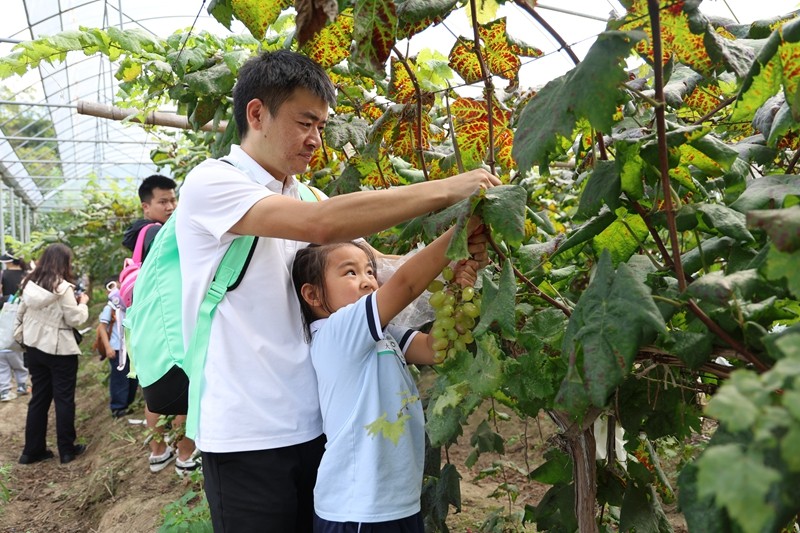 在黄丝劳动教育实训基地,幼儿与家长共同走进自然,在真实的农耕场景中亲身体验,实现劳动锻炼、文化浸润与家园共育的深度融合。