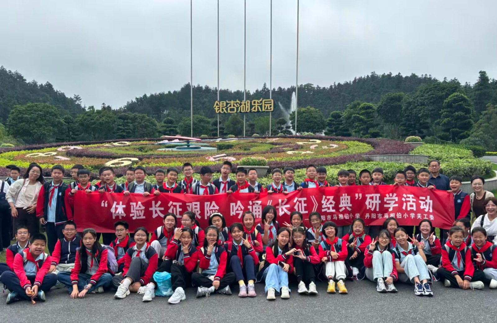 10月17日,丹阳市马相伯小学关工委与德育处联合组织小学六年级1200余名学生赴南京银杏湖乐园,开展了以“体验长征艰险,吟诵《长征》经典”为主题的研学活动。