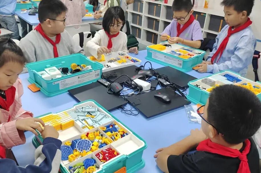同学们首先来到科技展览区,基地老师通过“声音变声波”“人脸找特征点” 的动态演示,让大家领略了“黑科技”的神奇,明白了把语音识别“听懂话”、人脸识别“认熟人”的复杂原理。在智能机器人的演示现场,机器人灵活地转动身体、摆动手臂,每一个动作都精准踩在旋律上。原本抽象的AI知识,在灵动的演示中变得鲜活又有趣。UGOT机器人汽车展区,UGOT机器人汽车稳稳地沿着模拟公路前行,并顺利绕过障碍物,把 “乘客”安全送达,使同学们啧啧称奇。基地老师结合AI技术,给同学们上了一堂有趣的垃圾分类知识课。大家动手操作“uKit AI教具”,将一个个小零件拼装成自己的专属机器人,学会了基础的拼装和编程知识,真切体会到“团结协作”能凝聚力量、“坚持探索”能突破困难的道理。