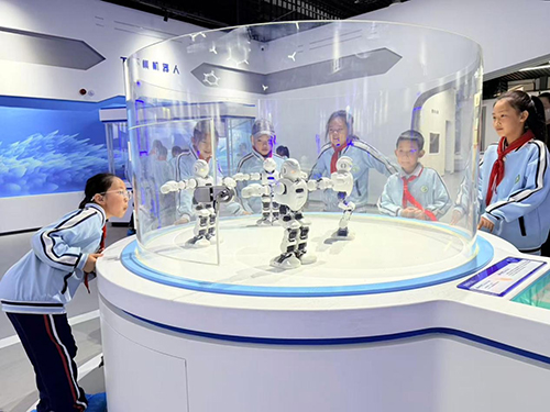 互动体验厅:这里成了孩子们的“欢乐天堂”。12D飞船座椅震动、光影变幻,带来身临其境的“太空航行”体验;滑雪模拟器上,同学们脚踩雪板、手扶雪杖,在虚拟雪场中感受速度与平衡;下棋机器人精准落子,跳舞机器人跟着音乐扭动,背包飞行器、画像机器人前更是排起长队,大家在动手操作中,实实在在触摸到科技的灵动与魅力。