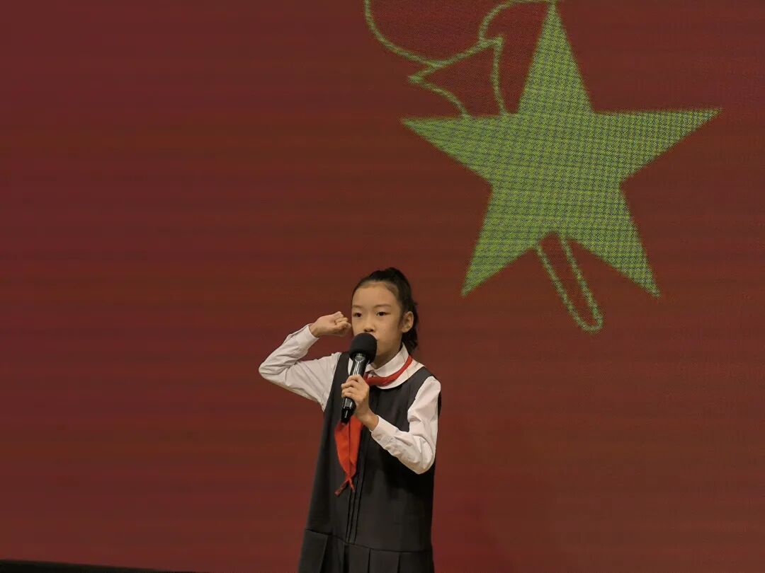 宣讲结束后,大队辅导员李丹洋老师作总结讲话。她对本次活动的成效给予肯定,勉励同学们以英烈为榜样,将红色精神内化于心、外化于行。随后,在三年五班刘诗梒同学的带领下,全体少先队员举起右拳,重温入队誓词,铿锵有力的誓言回荡在报告厅内。