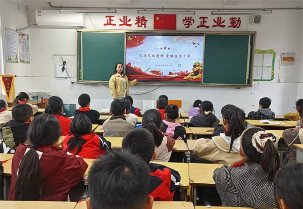 班会的最后,全体同学在班主任的带领下,庄严宣誓:“铭记历史,传承精神;勤奋学习,锤炼品格;明礼诚信,团结友善;强健体魄,立志成才;请党放心,强国有我!”铿锵有力的誓言,是孩子们对祖国、对时代最郑重的承诺。