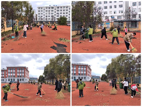 深秋时节,校园内柳树等树木落叶纷飞,不仅影响校园整洁,也给师生出行带来不便。活动中,学生在班主任的带领下,手持扫帚、撮子、编织袋等工具,分工合作、相互配合。有的弯腰清扫,有的负责收集,有的将落叶装袋清运,校园里处处是忙碌的身影。尽管秋风微凉,但同学们热情高涨,充分展现了不怕脏、不怕累的精神风貌。经过大家的共同努力,校园内环境焕然一新。