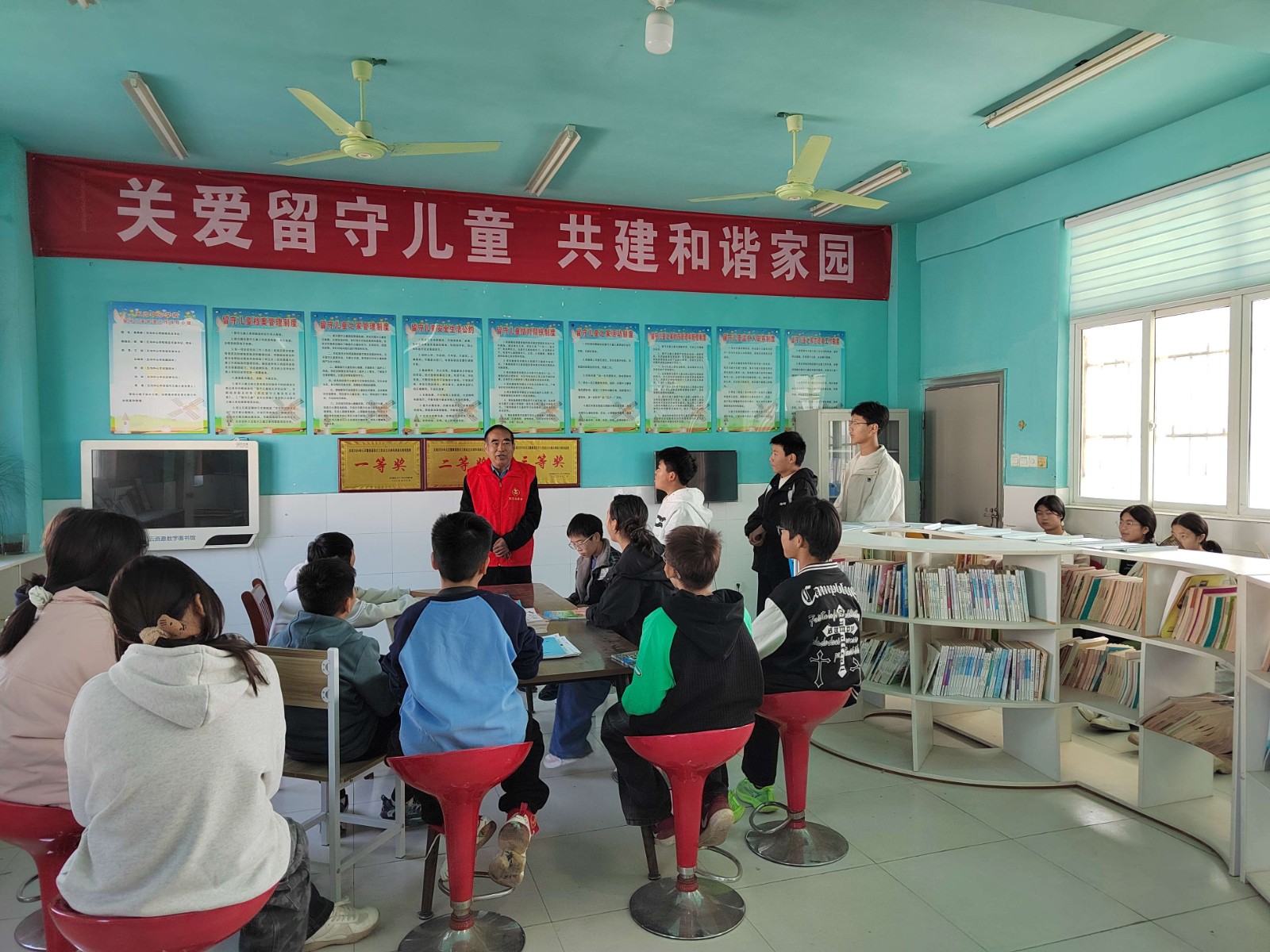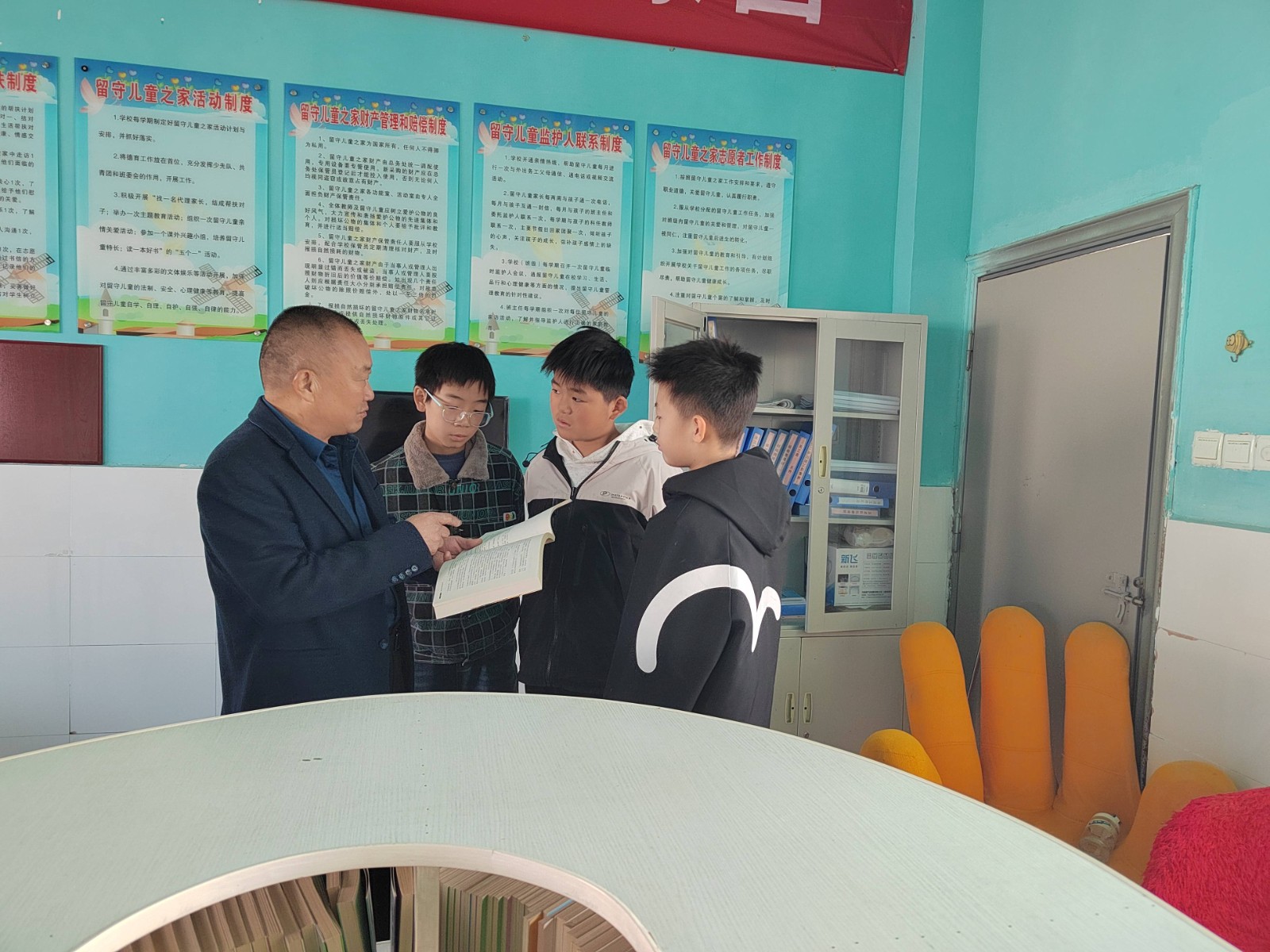 2025年10月22日上午,濉溪县五沟中心学校关工委“杏坛工作室”戴长海、王彦玺两位“五老”人员给“来访”的孩子们讲述阅读知识,并应同学们邀请,利用大课间走上讲堂,畅谈自己的成长故事,激励同学们奋勇前行。老少一起开开心心迎接重阳节的到来。碰巧,县委组织部工作人员前来迎重阳采风,拍下了这温馨的一幕。