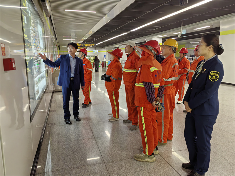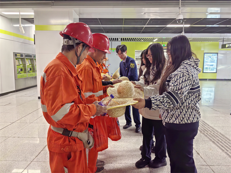 活动现场,社区党员与居民为环卫工人分发节日慰问品,随后与他们亲切交谈,详细了解工作日常与生活状况,耐心倾听工作中遇到的困难与实际需求,真挚表达节日的问候与诚挚的感谢。交流结束后,轨道交通工作人员还主动带领环卫工人走进地铁站,逐一介绍站内的自动售票机、消防应急设备和安检等区域。当来到纳凉休息区时,工作人员特别说明,这里常年为环卫工人准备着热水和休息桌椅,他们可随时进站歇脚。“这份关怀特别实在,让我们心里暖暖的!”参与活动的环卫工人们纷纷表示,这份关怀让他们切实感受到社会温暖,也更加坚定做好本职工作的信心与决心。