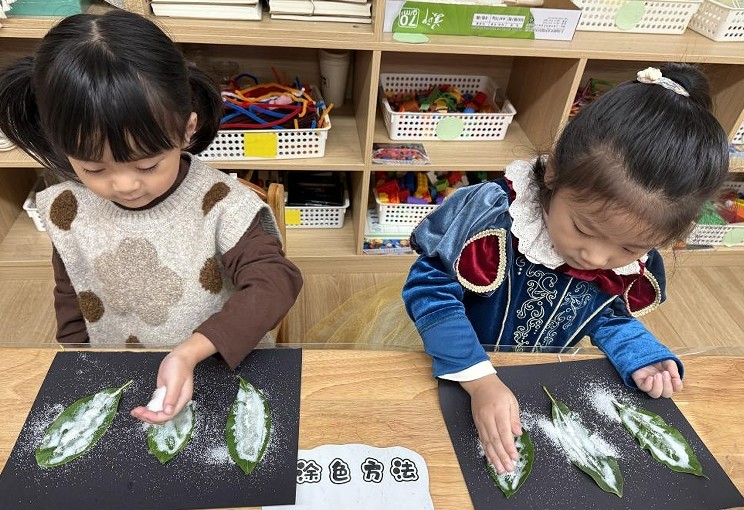 县第六幼儿园关工委老师们通过生动有趣的图片、视频和故事,为孩子们讲解霜降的由来、气候特点以及相关习俗。孩子们收集形态各异的树叶,发挥自己的想象力,用它们拼贴出一幅幅充满创意的树叶画。同时,孩子们还尝试了树叶拓印,将树叶的纹理清晰地印在纸上,感受大自然的神奇与美妙。