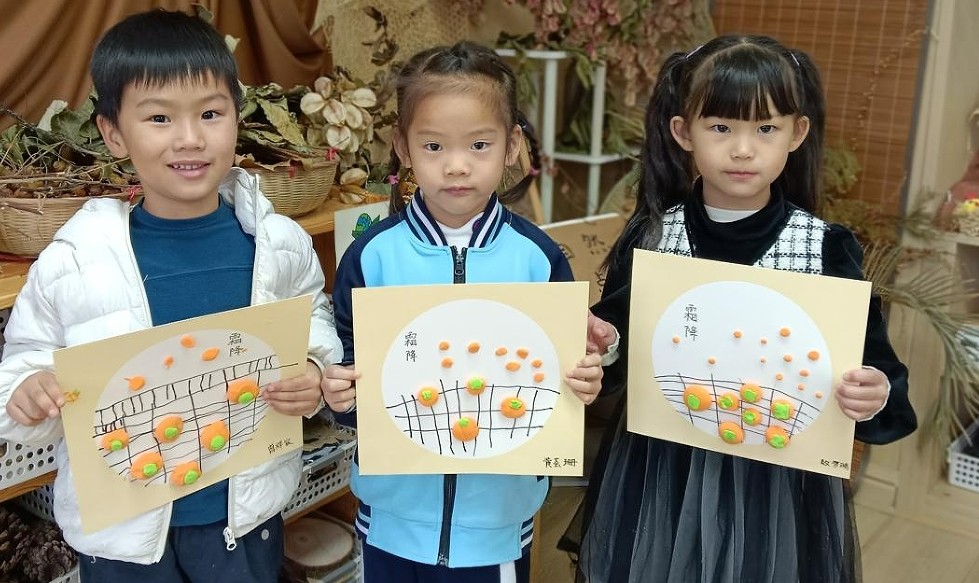 “柿柿如意”粘土手工:传递美好祝福。柿子作为霜降时节的特色水果,寓意着“事事如意”。孩子们用彩色的粘土,精心制作出一个个圆润饱满的柿子。为了让孩子们更直观地感受霜降时节天气的变化,老师为孩子们准备了天气记录表。孩子们每天观察天气情况,用简单的符号记录下来。老师们教孩子们学唱霜降儿歌,简单的歌词、欢快的旋律,让孩子们在传唱中进一步加深了对霜降节气的记忆。
