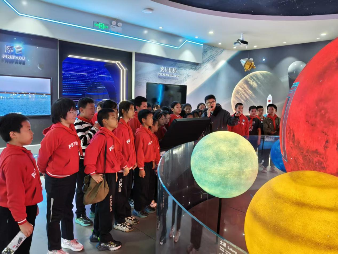 在星空之城,学生们首先来到气象研学馆。馆内用裸眼3D视频技术等高科技手段,将气象知识生动地展示出来。让学生们亲身感受到了大自然的神奇;随后便沿着栈道上山,参观天文研学馆。在讲解员的生动解说下,同学们了解了航天发展、火星探秘等知识。星球模型、视频介绍,激发了同学们浓厚的兴趣,现场气氛异常热烈。