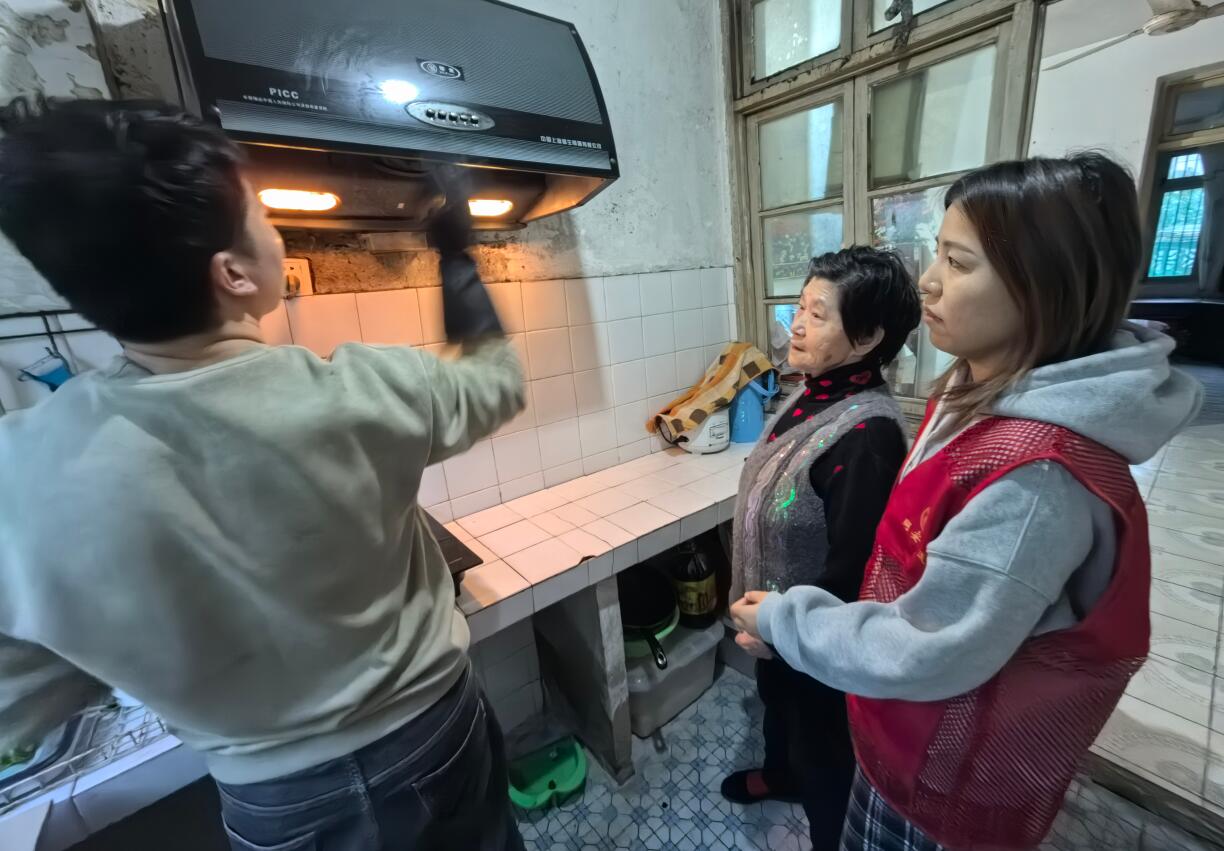 “张奶奶,厨房燃气阀用完记得关啊!”在张奶奶家中,小葛郢社区两委成员一边检查燃气管道、电路开关,一边耐心叮嘱安全事项。走进厨房,发现油烟机积满厚油污,不仅有异味,炒菜时火焰上窜还极易引发火灾,成了“定时炸弹”。“年纪大了够不着清理,还多亏你们发现!”张奶奶笑着说道。社区两委当即联系辖区爱心商家,说明情况后,商家承诺免费为老人提供上门油烟机清洗服务,用公益力量助力社区安全生产工作。用专业工具拆卸部件、环保清洁剂除油污,两个小时后,油烟机焕然一新,隐患彻底消除。“太感谢你们了!现在做饭踏实多了!”张奶奶拉着工作人员的手,笑容里满是感激。