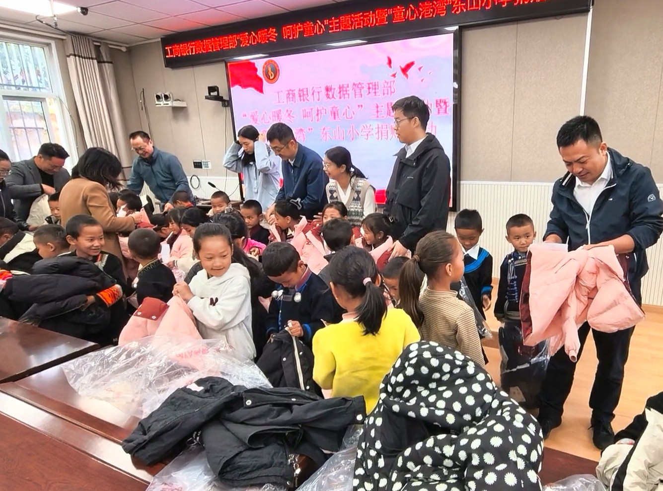 10月21日,中国工商银行数据管理部携手金阳县关工委、县教体科局、团县委,赴金阳县东山小学联合开展“童心港湾”爱心捐赠活动,为孩子们送去冬日的温暖与新学期的祝福。