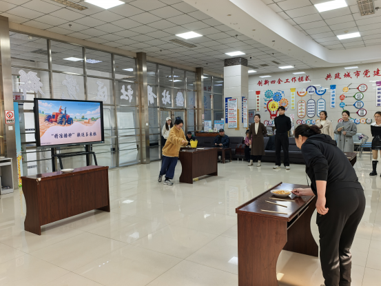 随后,“硕果累累”南瓜保龄球游戏项目传来了阵阵清脆的撞击声和欢呼声,小巧的南瓜化身为保龄球,滚动着撞向用矿泉水瓶摆成的“球瓶”,每一次精准的命中都引来一片叫好。“五谷丰登”小车拉蔬菜比赛则充满了速度与激情,参赛者们奋力转动纸片,让载着蔬菜模型的小车快速向自己移动,场面紧张刺激。最后进行的“岁丰年稔”蒙眼摸蔬菜项目,极大地挑战了参与者的触觉感知能力,大家蒙上双眼,仅凭手感仔细辨认眼前的蔬菜,时而自信地说出答案,时而犹豫不决,充满了悬念和乐趣。