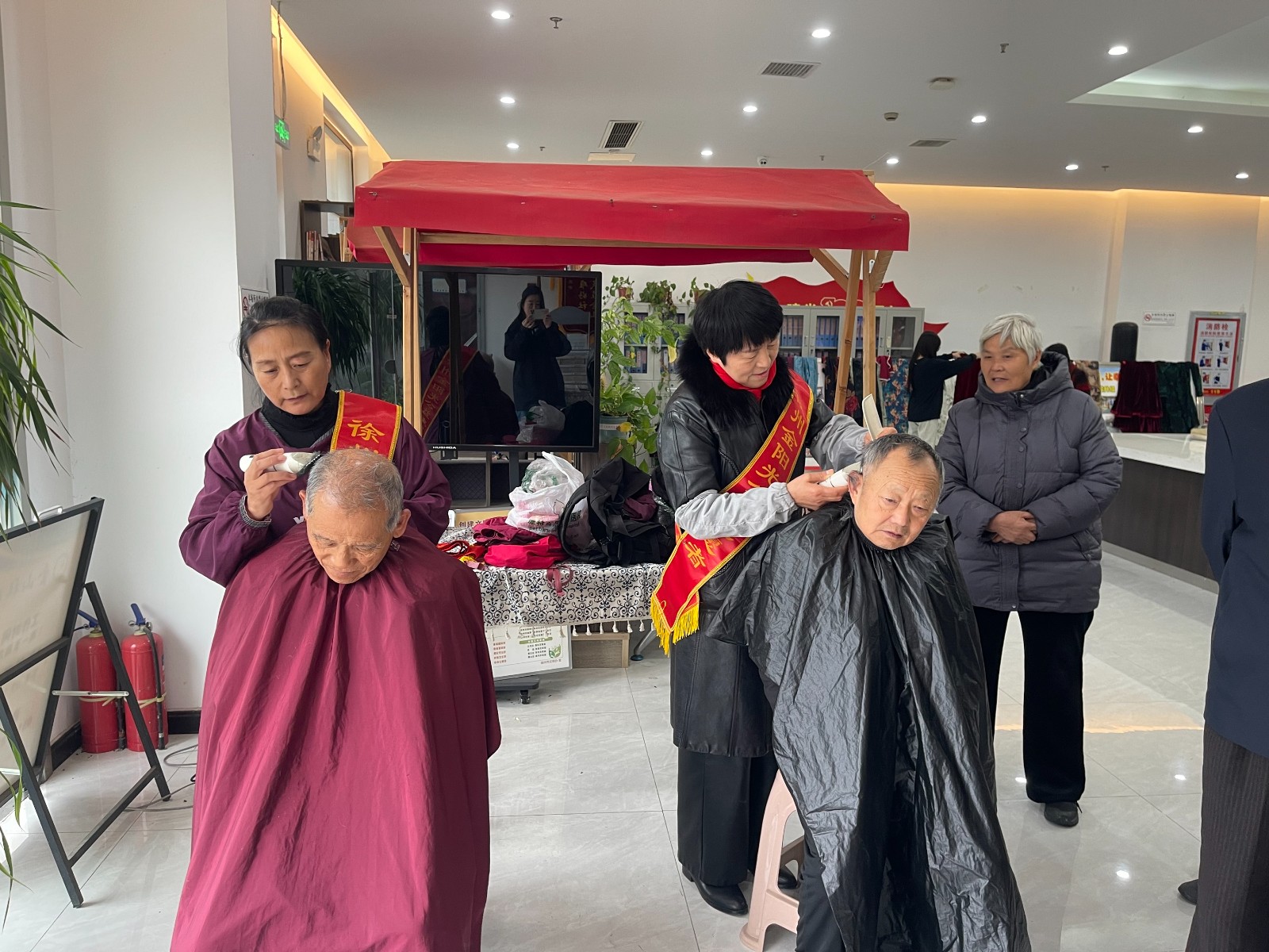 表演结束后,各项服务有序开展。金阳光志愿服务队的理发师耐心修剪发型,马先生摄影用镜头定格老人幸福笑容,鼎植口腔医生细致测量血压、解答健康疑问。同时,邮储银行工作人员通过案例讲解、发放手册,普及电信诈骗、养老诈骗防范知识,守护老人“钱袋子”。活动最后,工作人员为参与活动的老年人有序分发伴手礼。