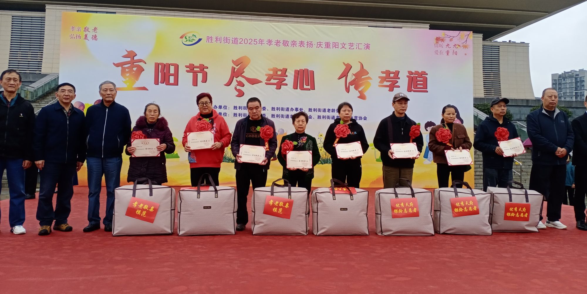 活动还表扬了夏琼芳、李慧军等8名2025年度“孝老敬亲”模范和梁淑兰、熊淑君等8名“优秀天府银龄志愿者”,组委会为他们颁发了证书和奖品被子。