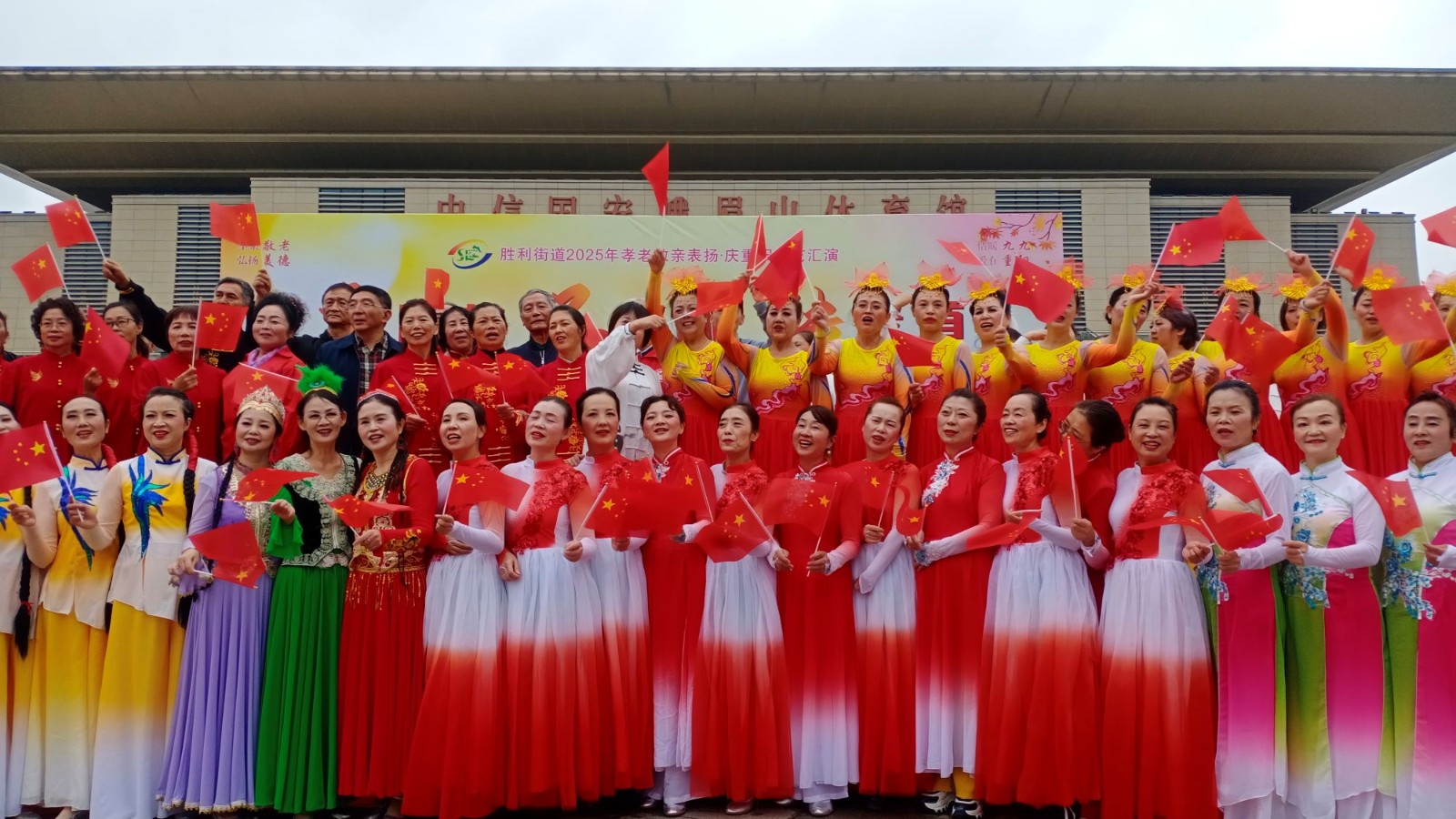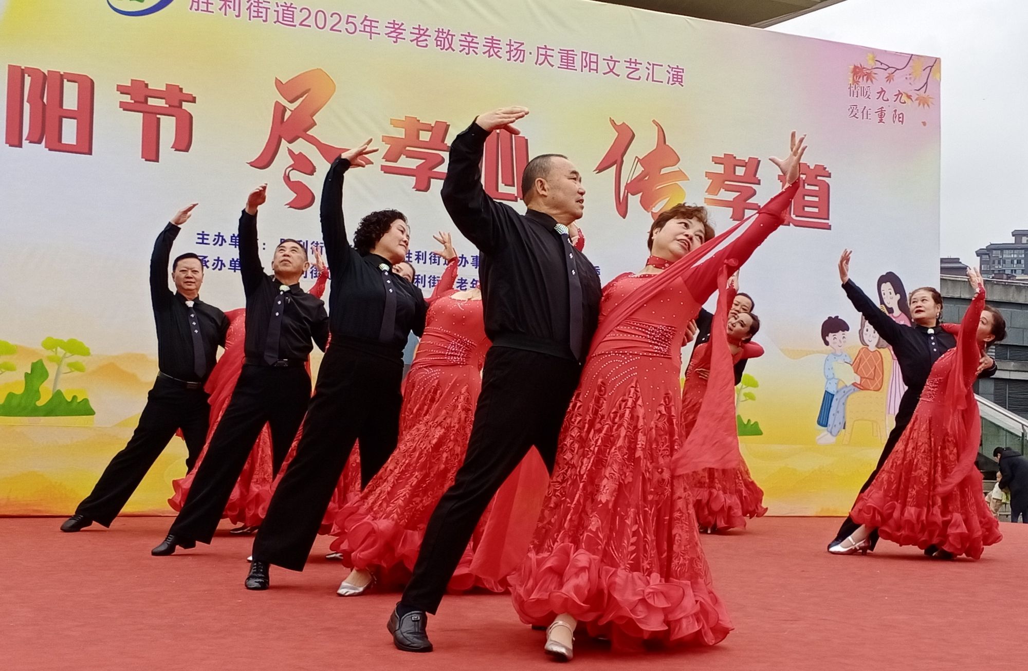 10月25日,峨眉山市胜利街道关工委在中信国安体育馆广场上开展表扬先进文艺汇演隆重庆祝重阳节活动,峨眉山市关工委常务副主任周秀庚出席活动。