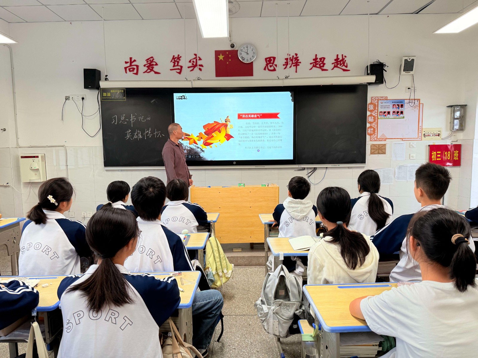 课堂上,不同时代、不同领域的英雄群像徐徐展开:既有董存瑞舍身炸碉堡,邓玉芬为革命忍痛送子参军的革命先烈,也有焦裕禄扎根兰考治沙治碱、鞠躬尽瘁的人民公仆;既有和志虹两度出征维和,舍小家为大家的时代榜样,更有无数在平凡岗位上默默坚守、无私奉献的普通劳动者。教师们强调,英雄无关身份高低、事迹大小,只要心怀家国、勇于担当,便值得永远铭记,让英雄精神成为可触摸、可追随的精神坐标。