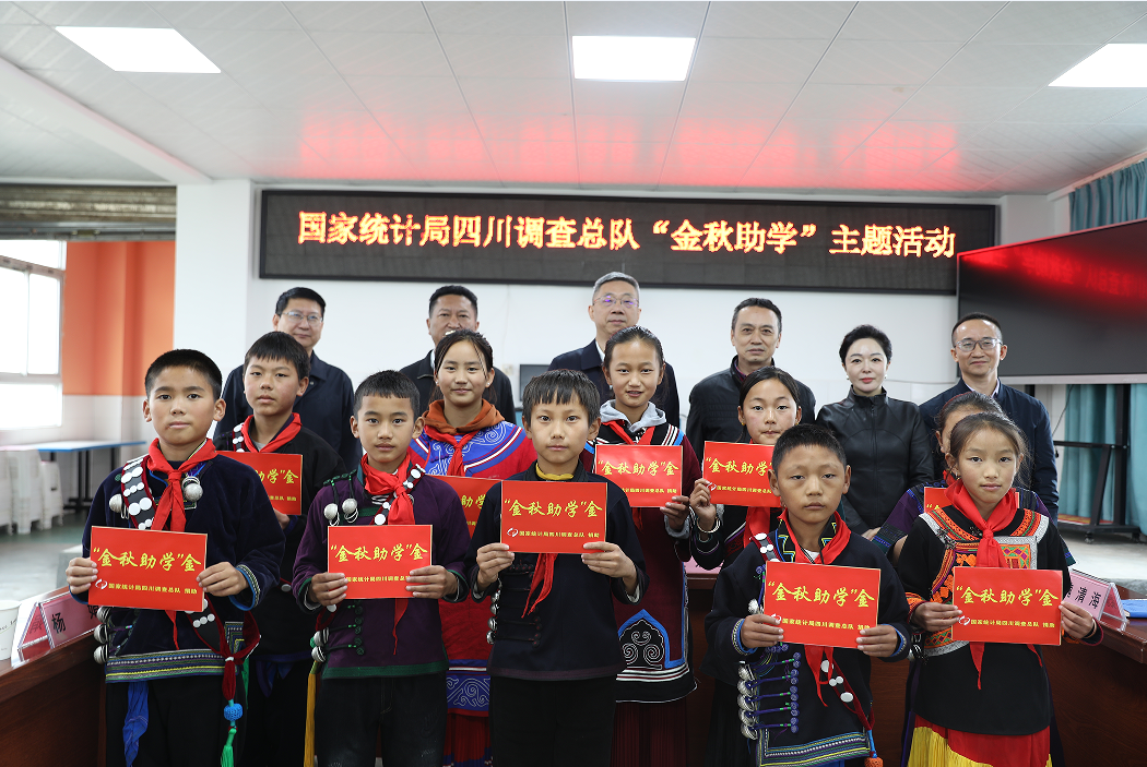 2025年10月21日,国家统计局四川调查总队党组书记、总队长赵太想一行,在金阳县委常委、常务副县长阿于木果的陪同下,来到金阳县南瓦小学开展“2025国家统计局四川调查总队金秋助学”主题活动。