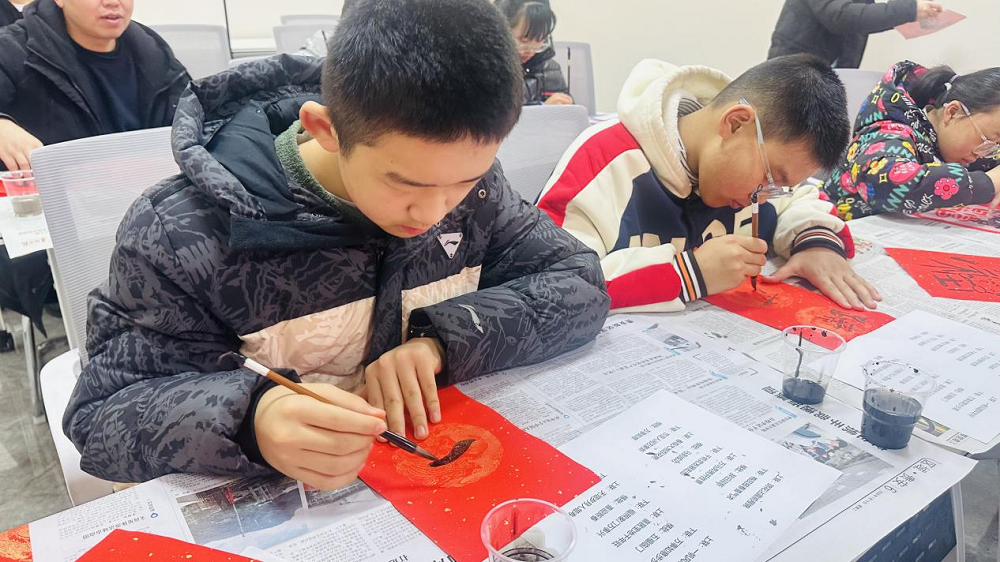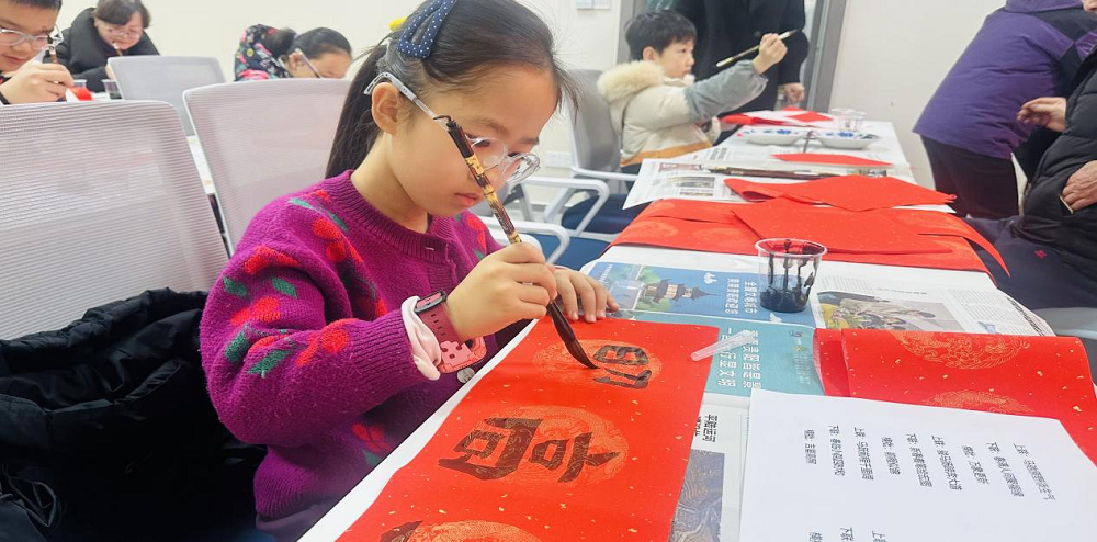 活动现场暖意融融,社区居民及小朋友们齐聚一堂。大家在志愿者的指导下,拿起毛笔,在红纸上挥毫泼墨。一幅幅笔锋遒劲的春联、一个个饱含祝福的“福”字跃然纸上,在孩子们一笔一划的书写和对新春祝福中,既有辞旧迎新的美好愿景,也有对新年的热切期盼。