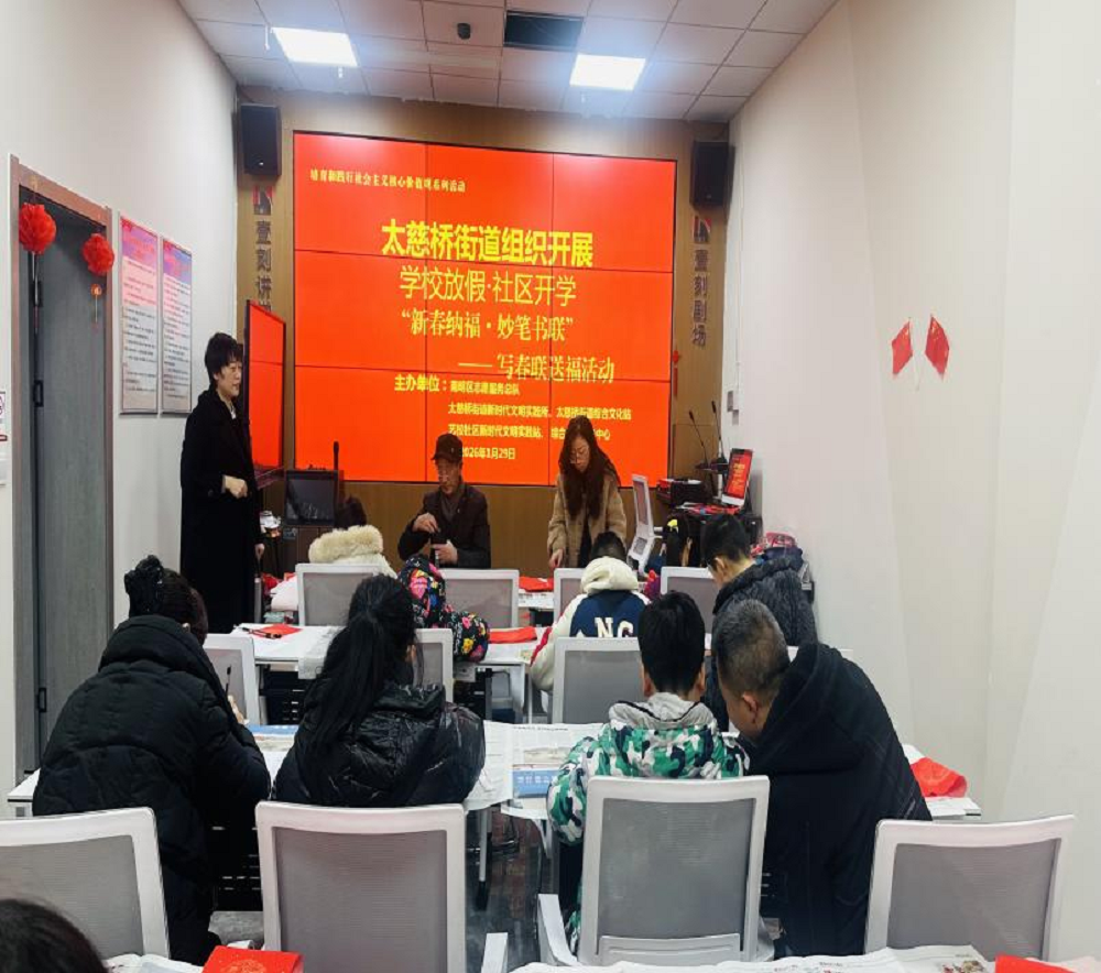 为营造欢乐祥和的新春氛围,传承弘扬中华优秀传统文化,2026年1月29日,贵阳市南明区太慈桥街道关工委与艺校社区组织开展“新春纳福·妙笔书联”写春联送祝福活动。