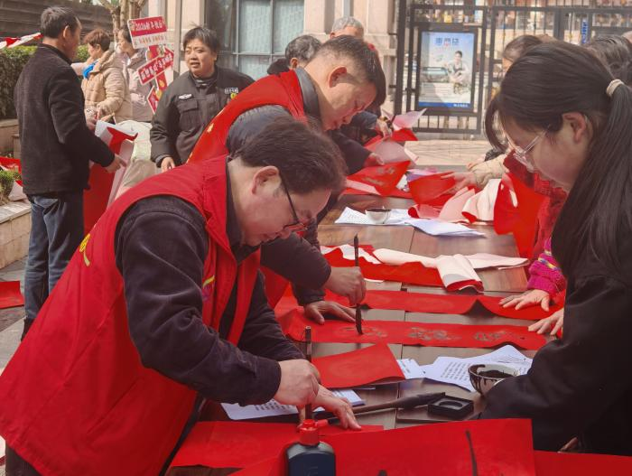 活动现场洋溢着喜庆的气氛。由社区居民自编自演的歌舞节目轮番登场,质朴而真挚的表演赢得了阵阵掌声与喝彩,展现了社区居民积极向上的精神风貌。活动现场还专门设立了写春联送福字专区与爱心健康义诊专区。书法爱好者们挥毫泼墨,将新春祝福凝于笔端;医护人员耐心为居民,特别是老年朋友提供健康咨询和基础检查,送去节日的关怀。