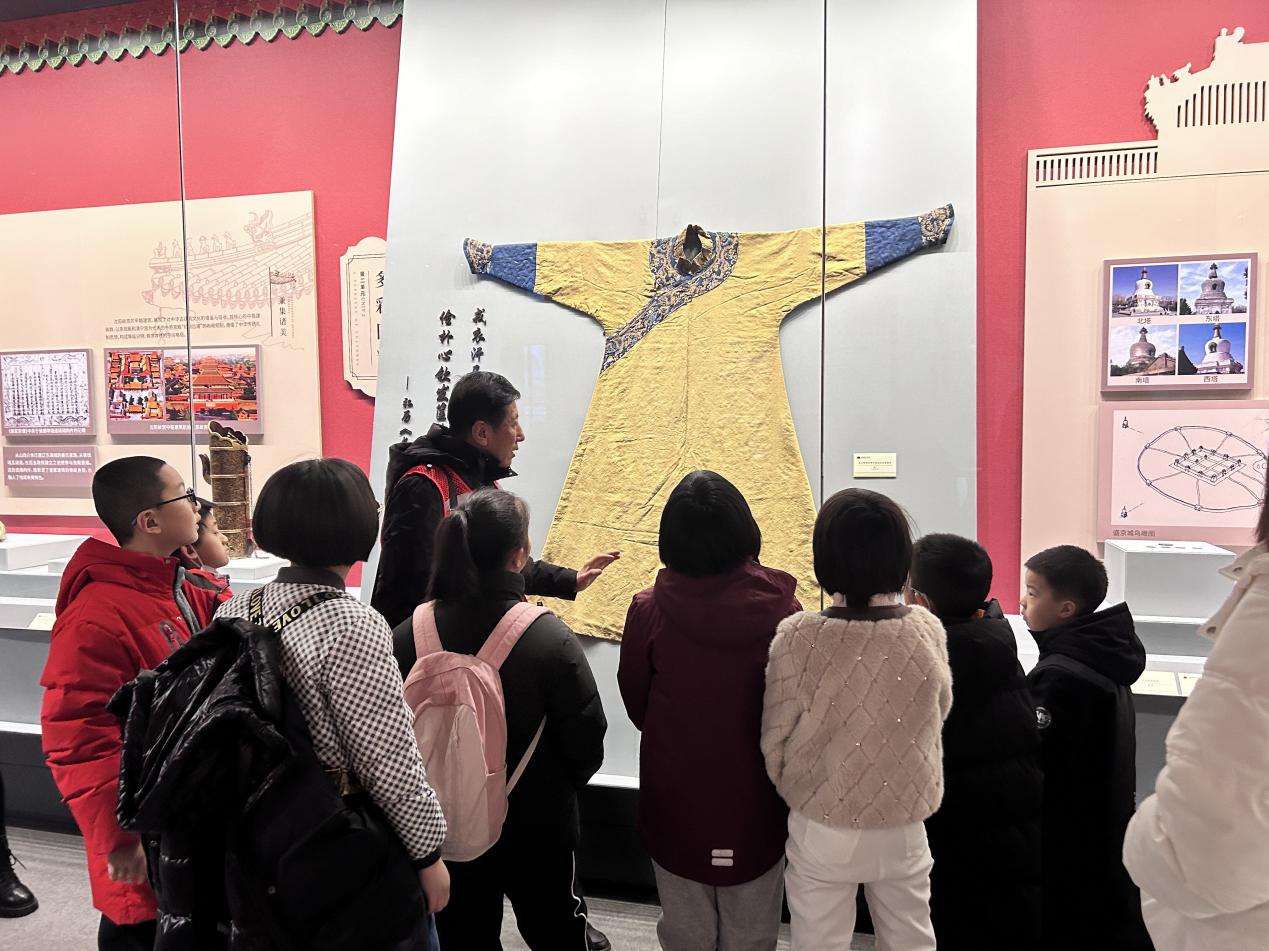 活动中,王伟老师以亲切的寄语开启了本次讲解:“希望通过今天的参观,让大家不仅看到建筑与文物,更能感受到沈阳故宫四百年的历史脉搏。”据悉,本次参观聚焦“沈阳故宫四百年历史展”,涵盖一百二十件馆藏珍贵文物,其中国家一级文物达二十四件。王老师通过生动详实的叙述、互动问答的方式,引导孩子们观察、思考,深入理解文物背后的历史故事与文化内涵。