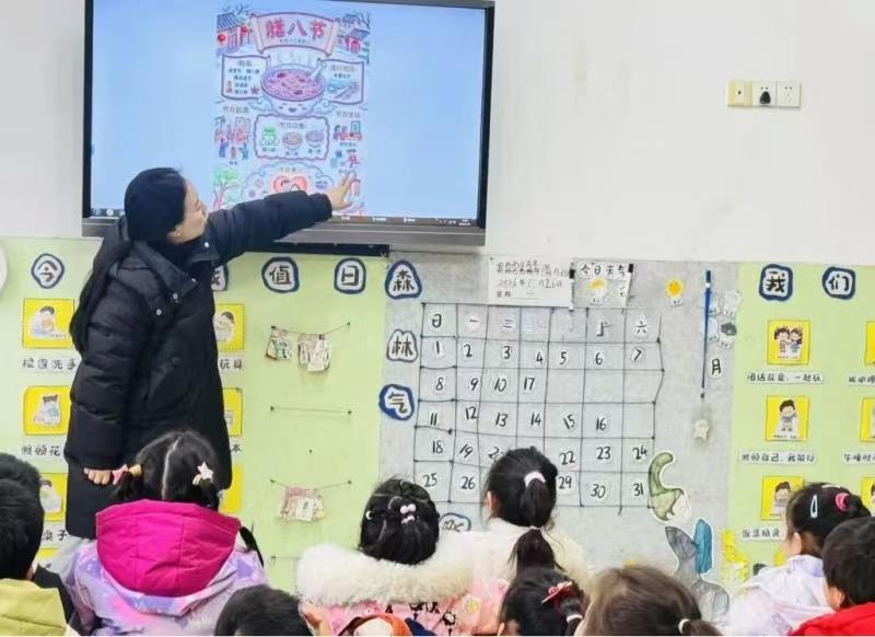 活动中,老师们利用升旗仪式、视频、图片、故事、童谣等形式,用孩子听得懂的语言,让孩子深入了解认识腊八节的美食和习俗。
